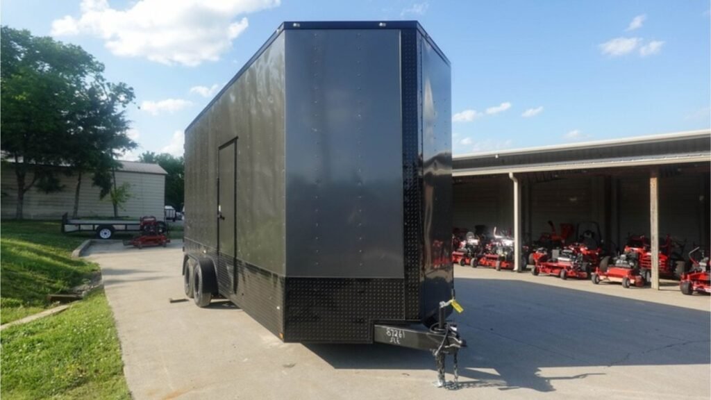 7×20 V Nose Charcoal With Black Out Trim Enclosed Trailer (2) 3500 LB Axles 9 Ft Interior height Barn Doors