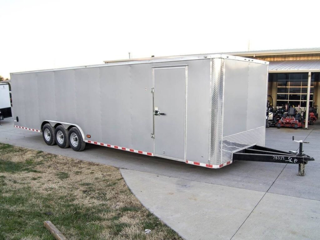 8.5 x 32 Silver Flat Nose Enclosed Car Hauler Trailer with (3) 7K Axles 21K GVWR