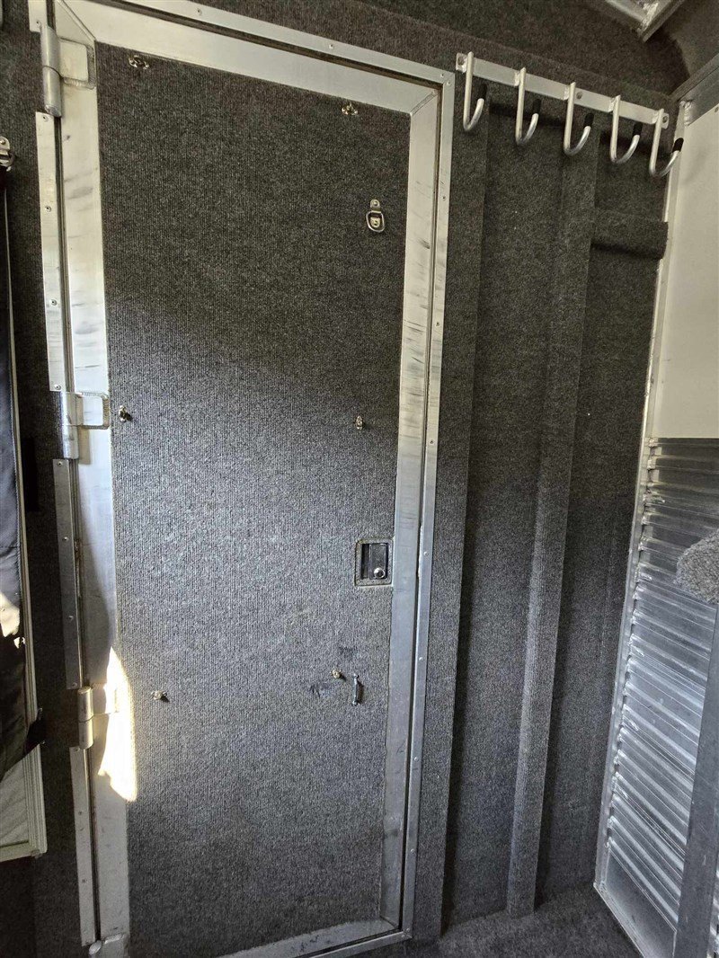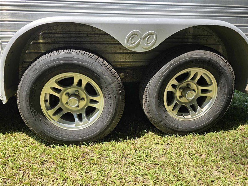 2000 C&C 2 horse all aluminum trailer with ramp & dressing room. 7’6″ inside height for tall horses. Trailer has a 2 camera system with in truck monitor, 11′ awning, new aluminum rims, almost new heavy duty trailer tires, fans on each horse, spare tire, custom screen for back opening. 2 escape doors, 2 saddle racks, bridle hooks, walk thru door to horse area. Axels blocked to accommodate newer trucks. All new LED lights. Solid, quality built trailer. Pulls great, horses load easily.