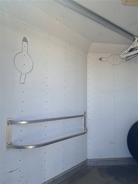 railer measures 8’wide x 7’tall x 22′ on the floor. Trailer features extended tounge, electric jack, combo lock on tack door, extra large dressing room, insulated roof, roof vent, walk through door into horse area, escape door with slider window, 3 drops with safety bars, alcoa wheels and good tires, hay rack w/ 2 water tanks. Horse area has poured in rubber floor, stud divider, roof vents, padded stalls, feed bags, interior lites, bus windows on hip side, collapsible rear tack, 4-teir saddle tree, bridle hooks, brush tray, full length awning, load lites and comes with 10- 6′ aluminum panels. This is a great little trailer and will not last long!!!!!