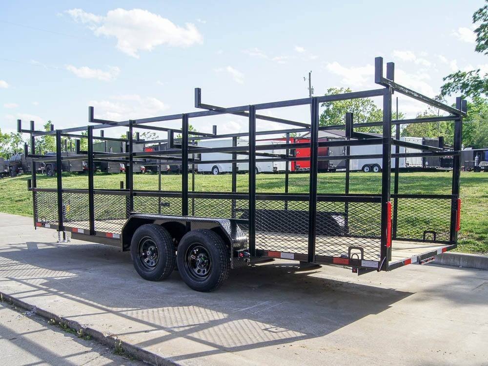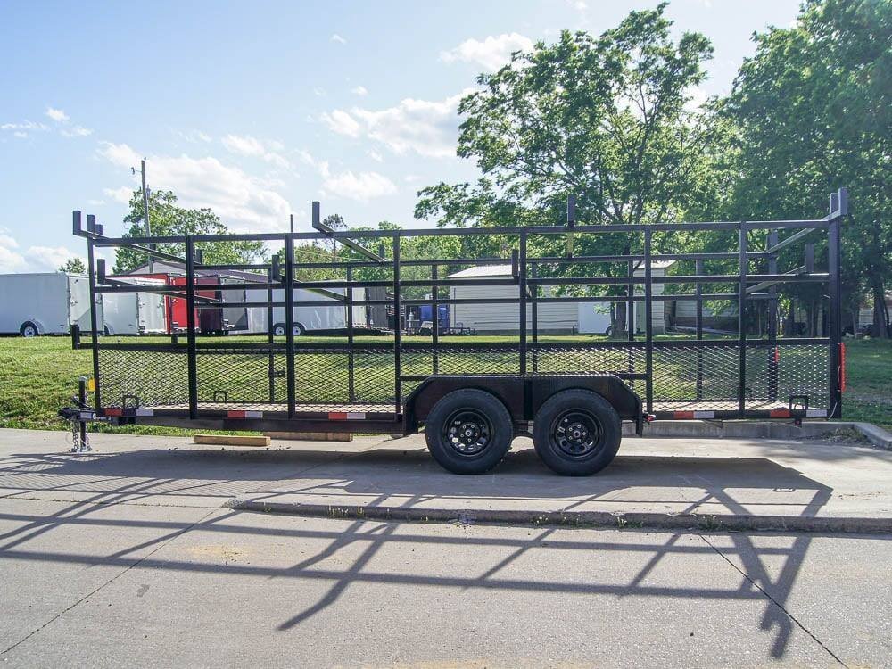 6.4×20 Straight Deck Tandem Utility Trailer Mesh Sides Double Ladder Racks