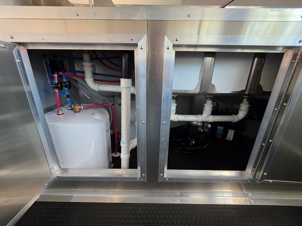 • Complete Sink & Plumbing Package – Includes 30-gallon fresh water tank, 50-gallon waste tank, 2.5-gallon water heater, and city water fill box for full service capability.