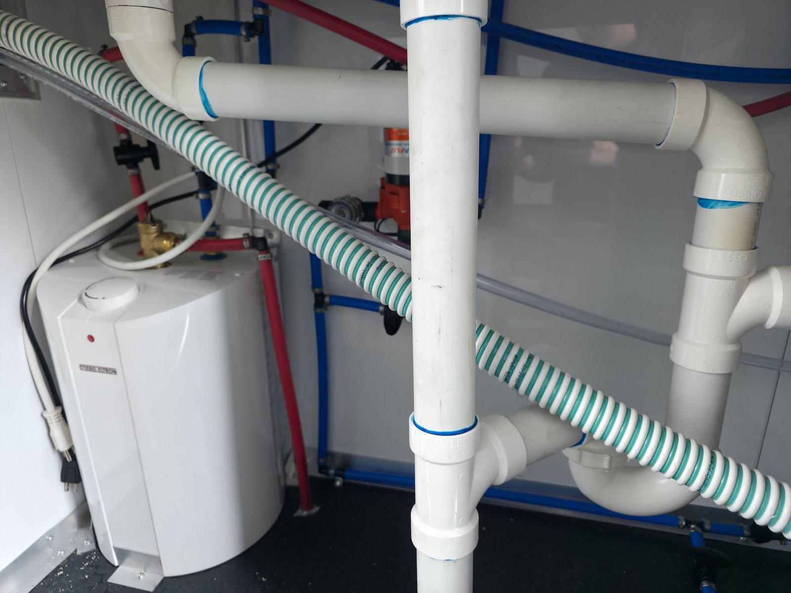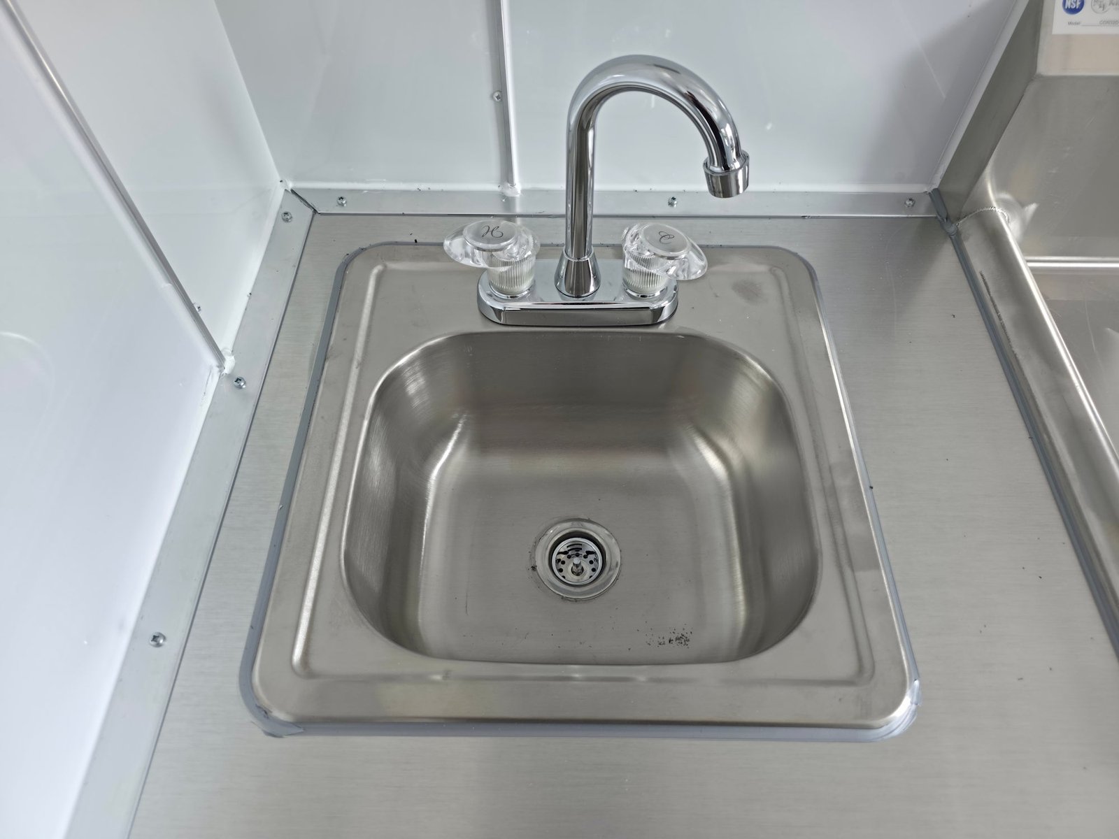 Complete sink package includes a 30-gallon fresh water tank, 50-gallon waste tank, and a 2.5-gallon water heater, providing all the water you need for food prep and cleaning.