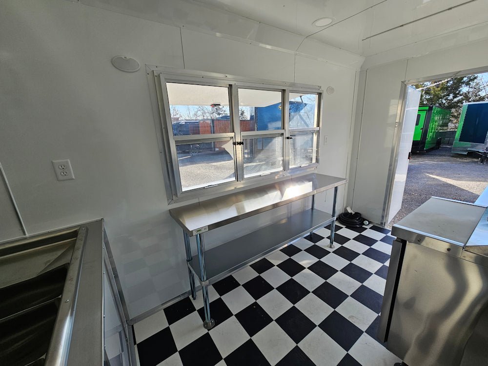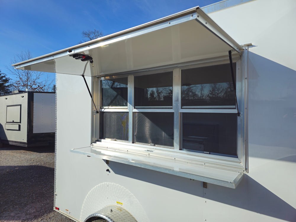 • Convenient Service Window: A 6-foot concession window with glass, screens, and a flip-up counter, offering easy customer interaction and service.