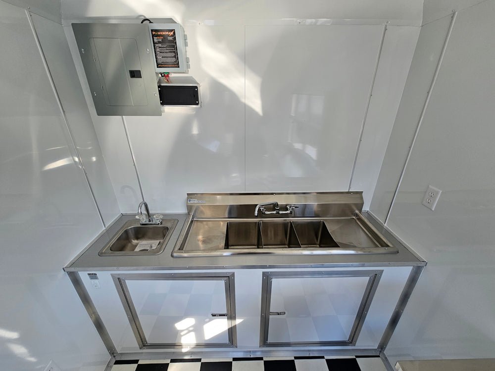 • Complete Sink & Plumbing Package: Includes a 30-gallon fresh water tank and a 50-gallon waste tank, along with a 2.5-gallon water heater for hot water access.