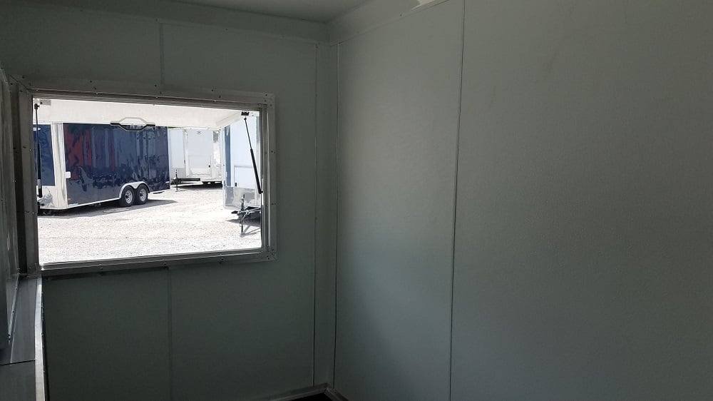 Access & Stability: 36″ entry door with view window, 30″ interior door to rear, crank jacks on all four corners, and roller wheels provide secure, level setup anywhere.
