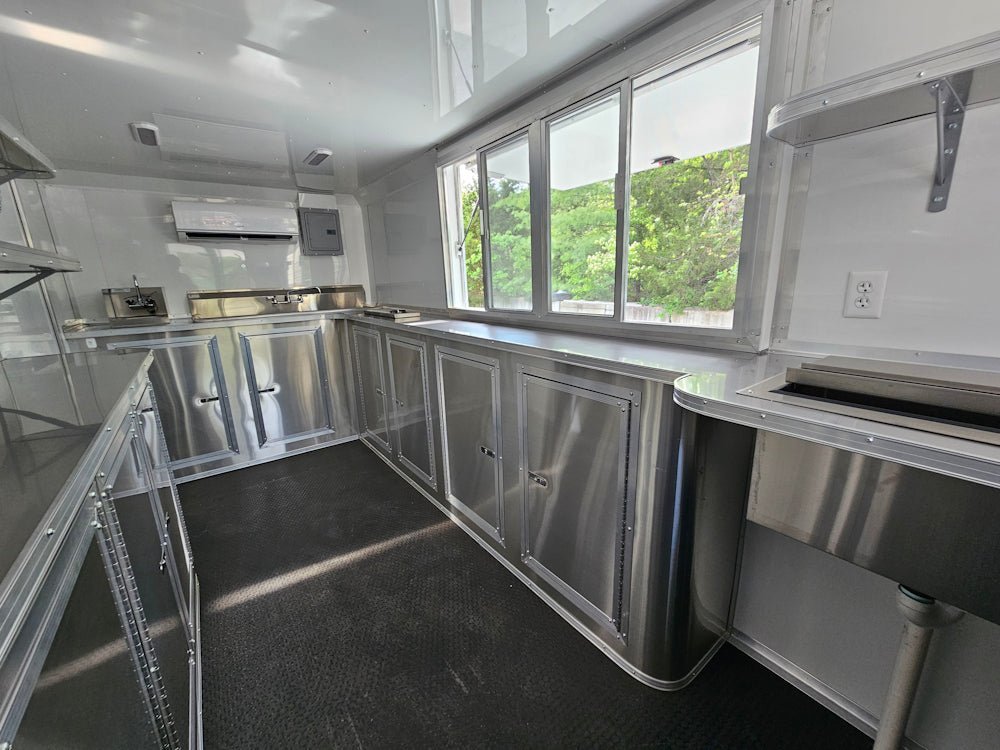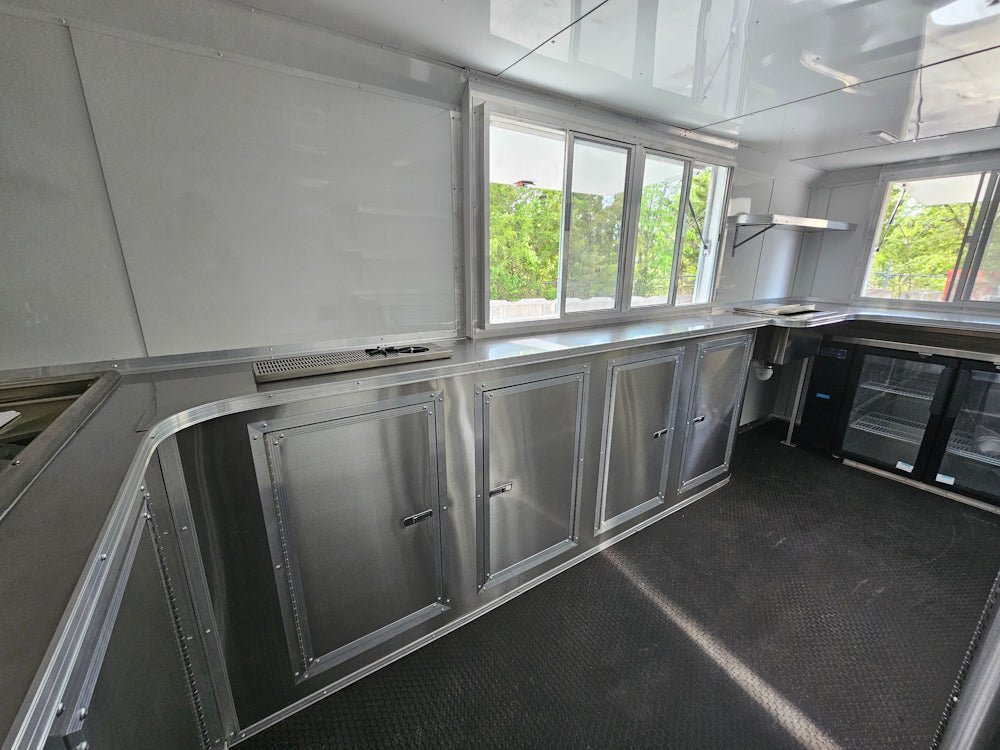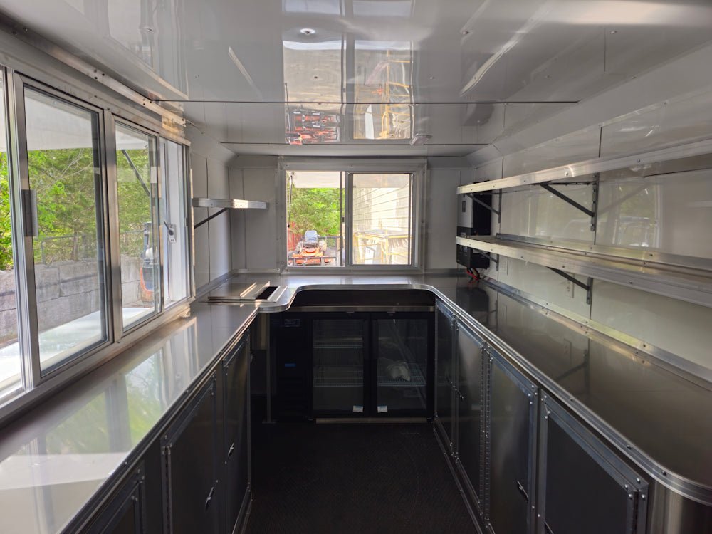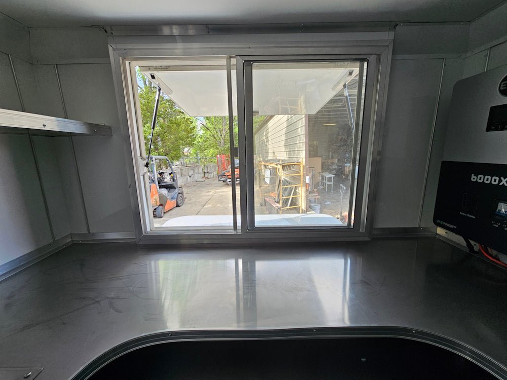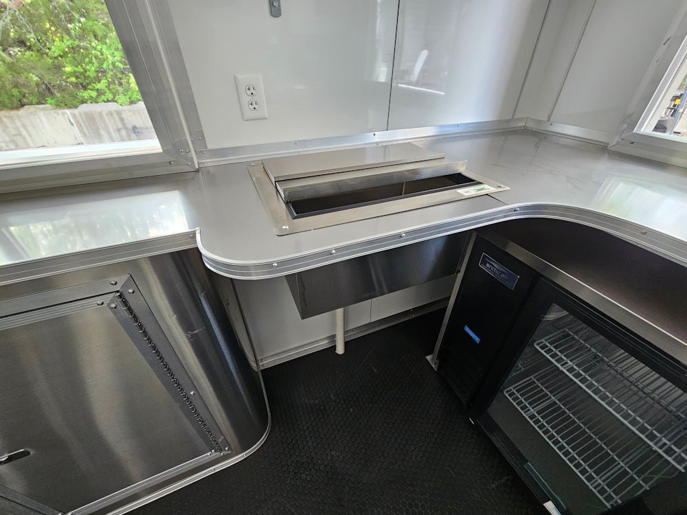 Dual Concession Windows with Counters – 4′ and 6′ sliding windows with screens allow flexible service and ventilation, paired with flip-up exterior counters for clean, efficient beverage service.