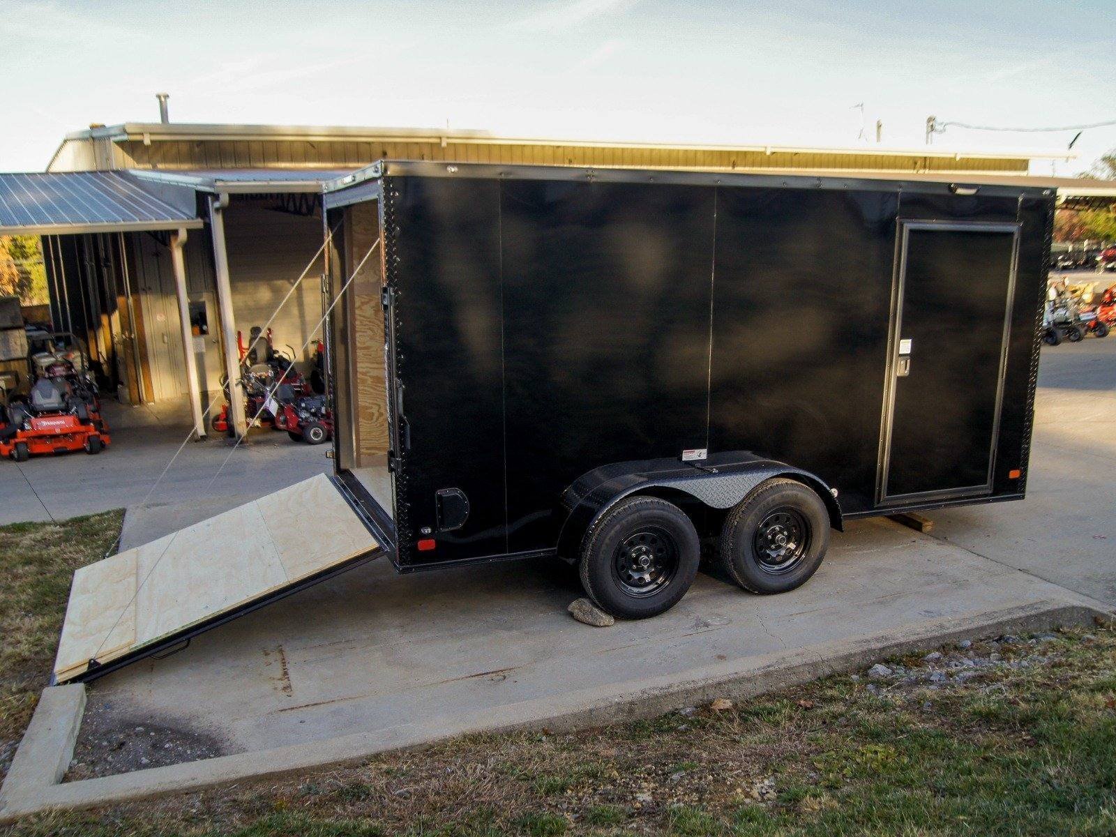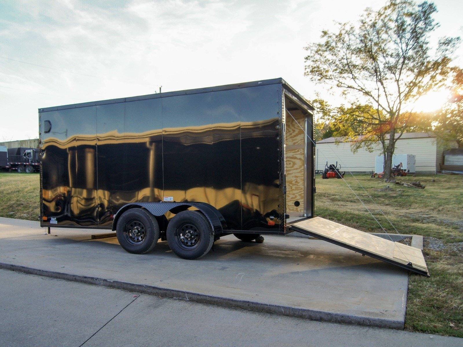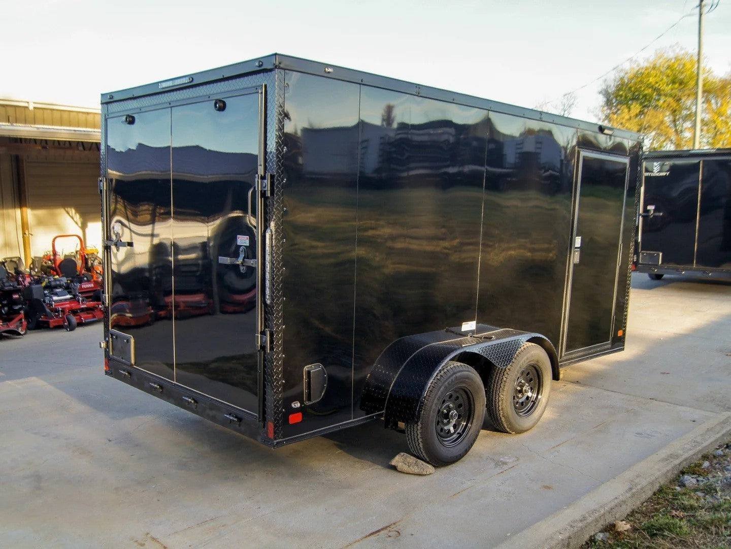 7×14 Enclosed Trailer Black V-Nose Blackout Package Storage (2) 3,500lb Axles