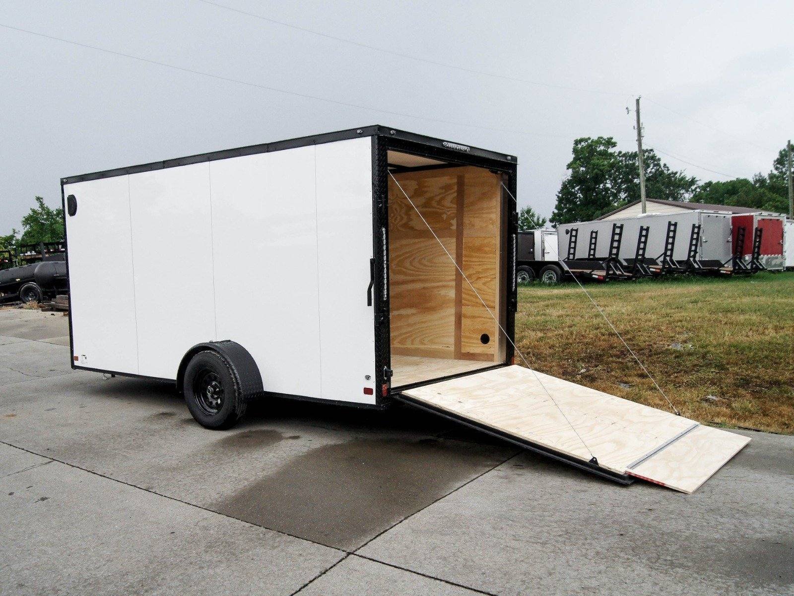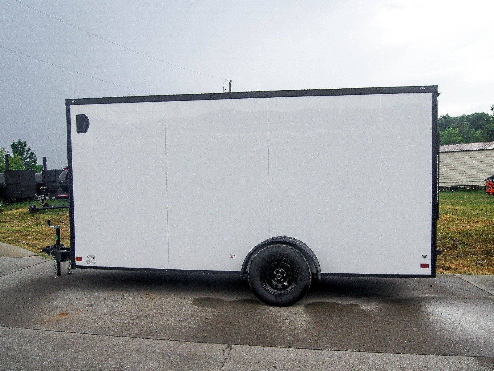 7×14 Enclosed Trailer White V-Nose Blackout Package 3,500lb Axle Storage