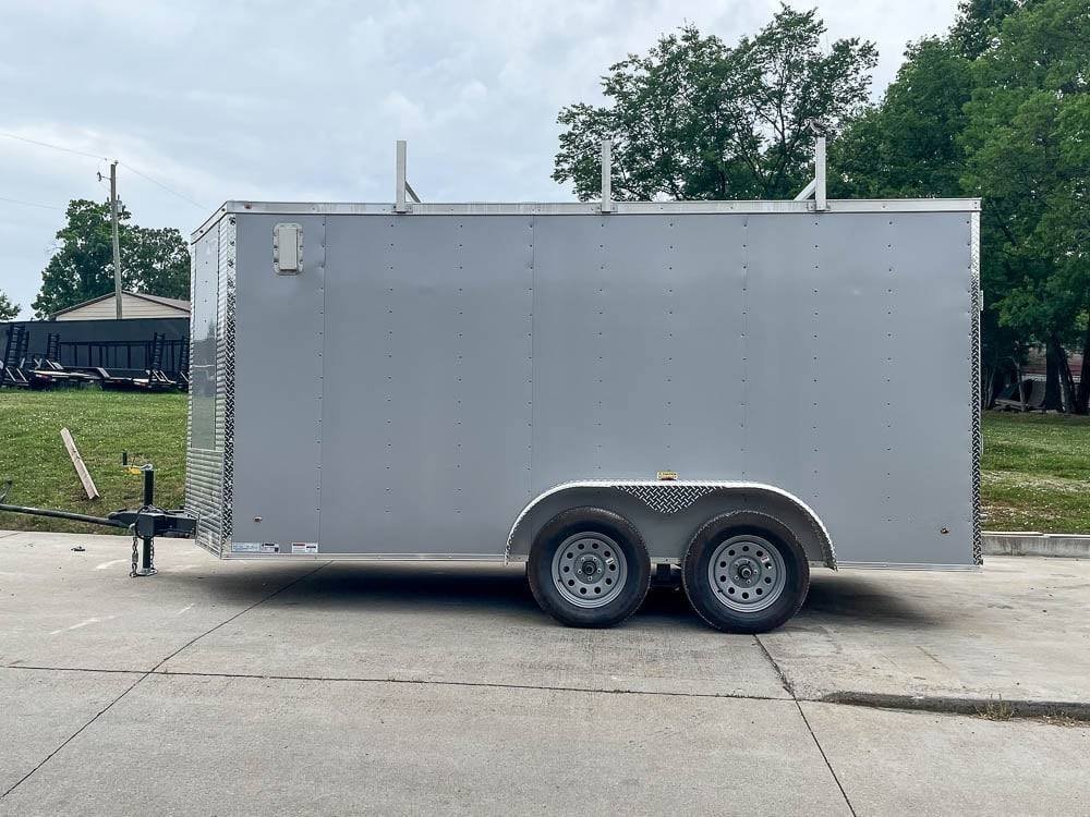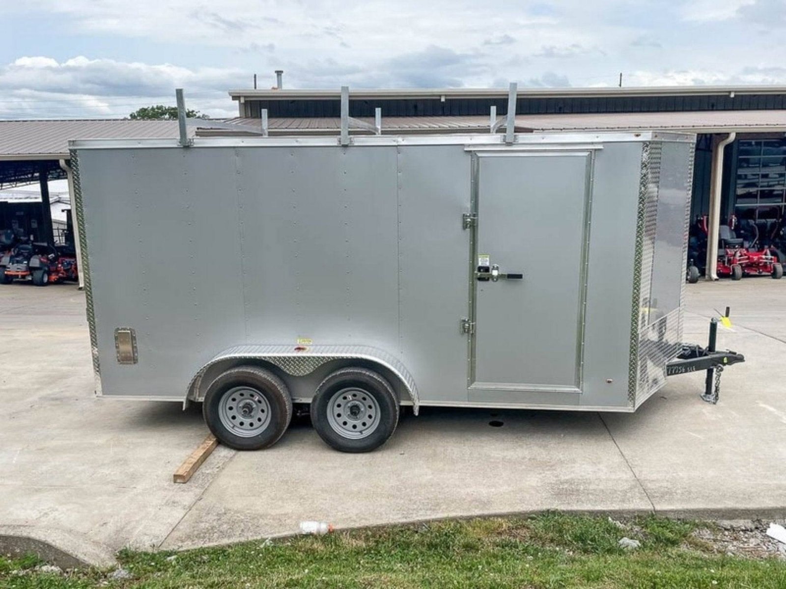 7×14 Enclosed V-Nose Trailer Silver with Ladder Racks (2) 3,500lb Axles Storage