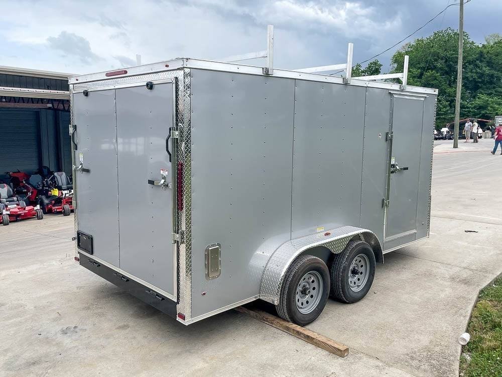 7×14 Enclosed V-Nose Trailer Silver with Ladder Racks (2) 3,500lb Axles