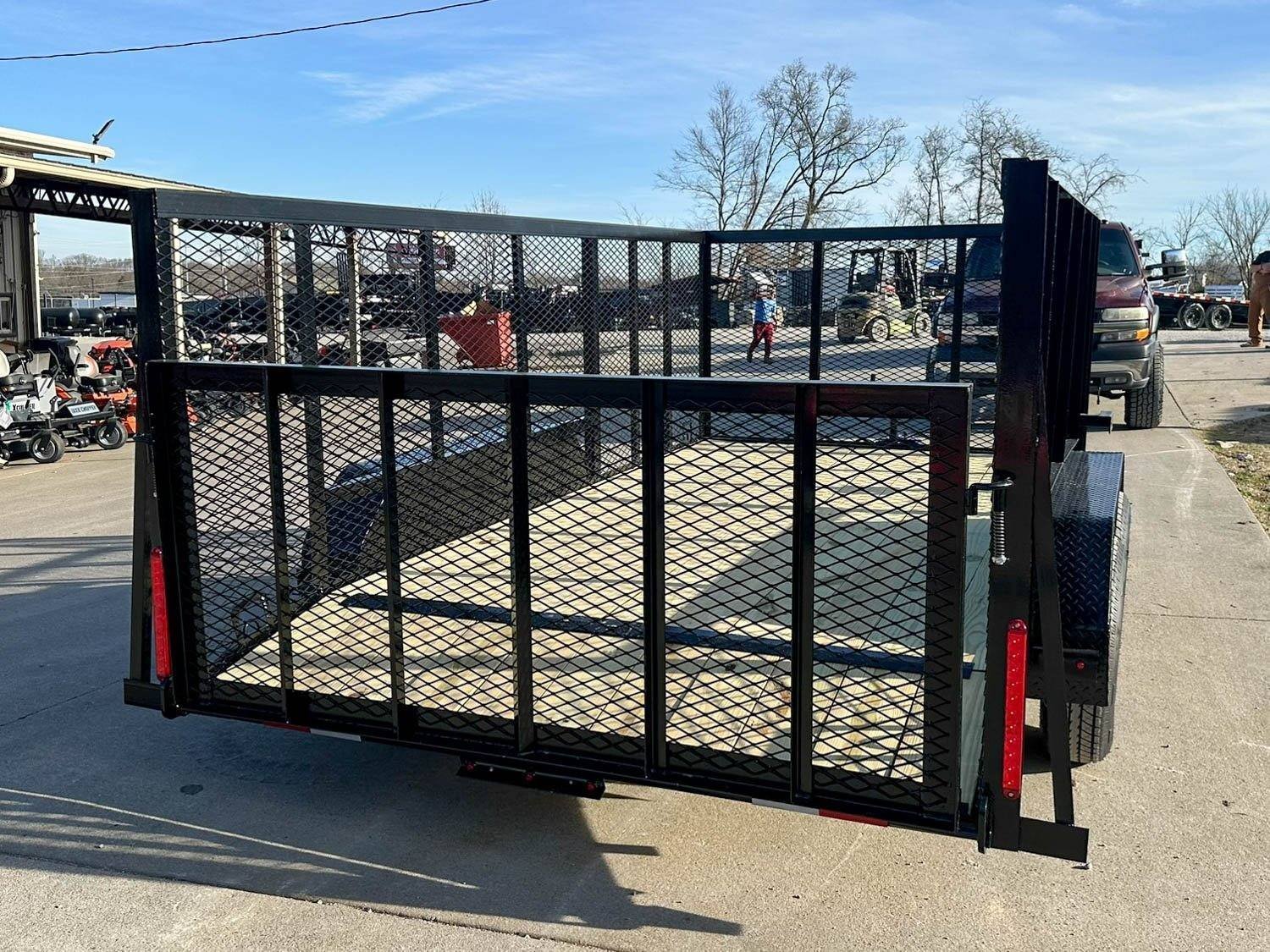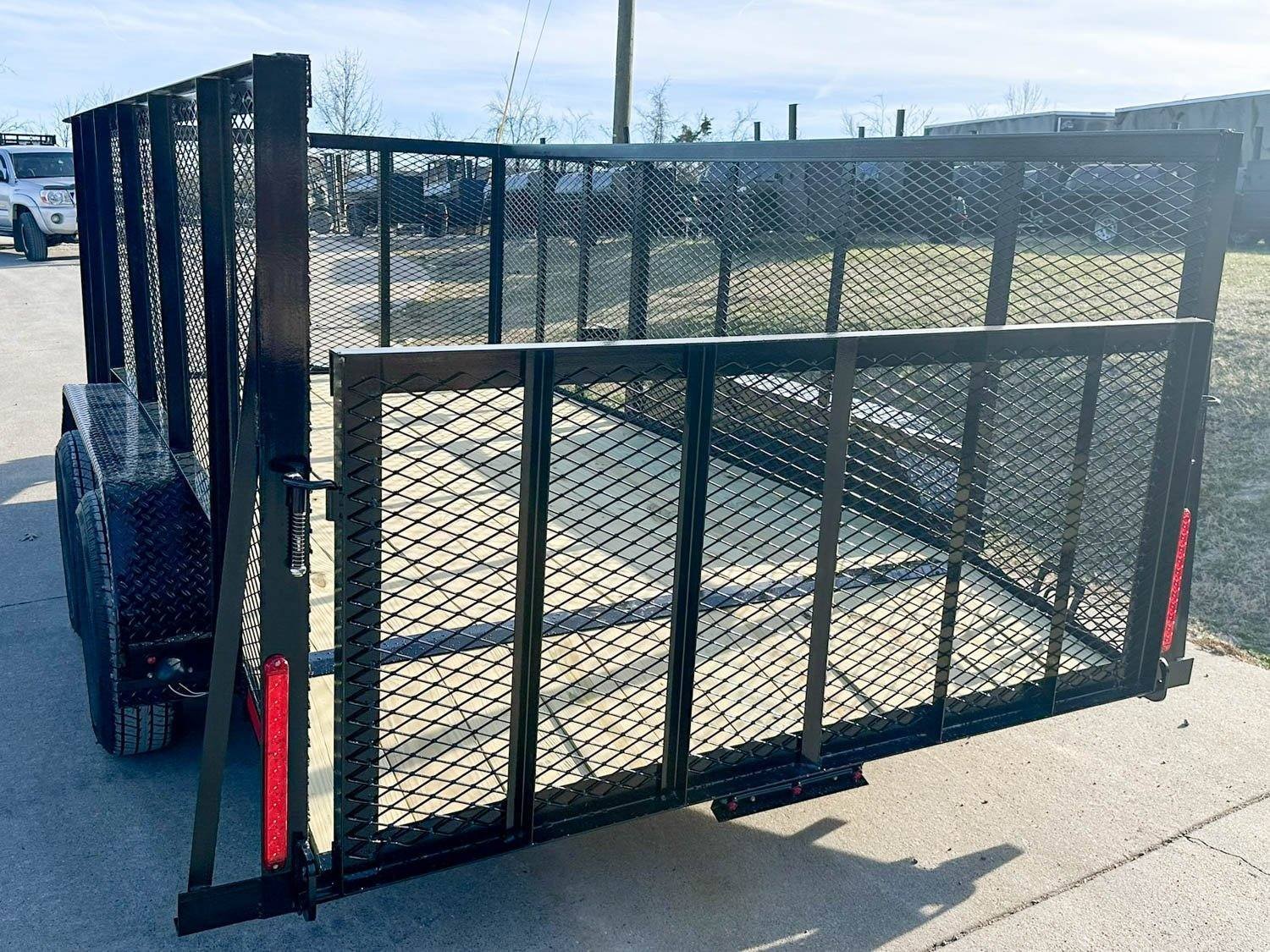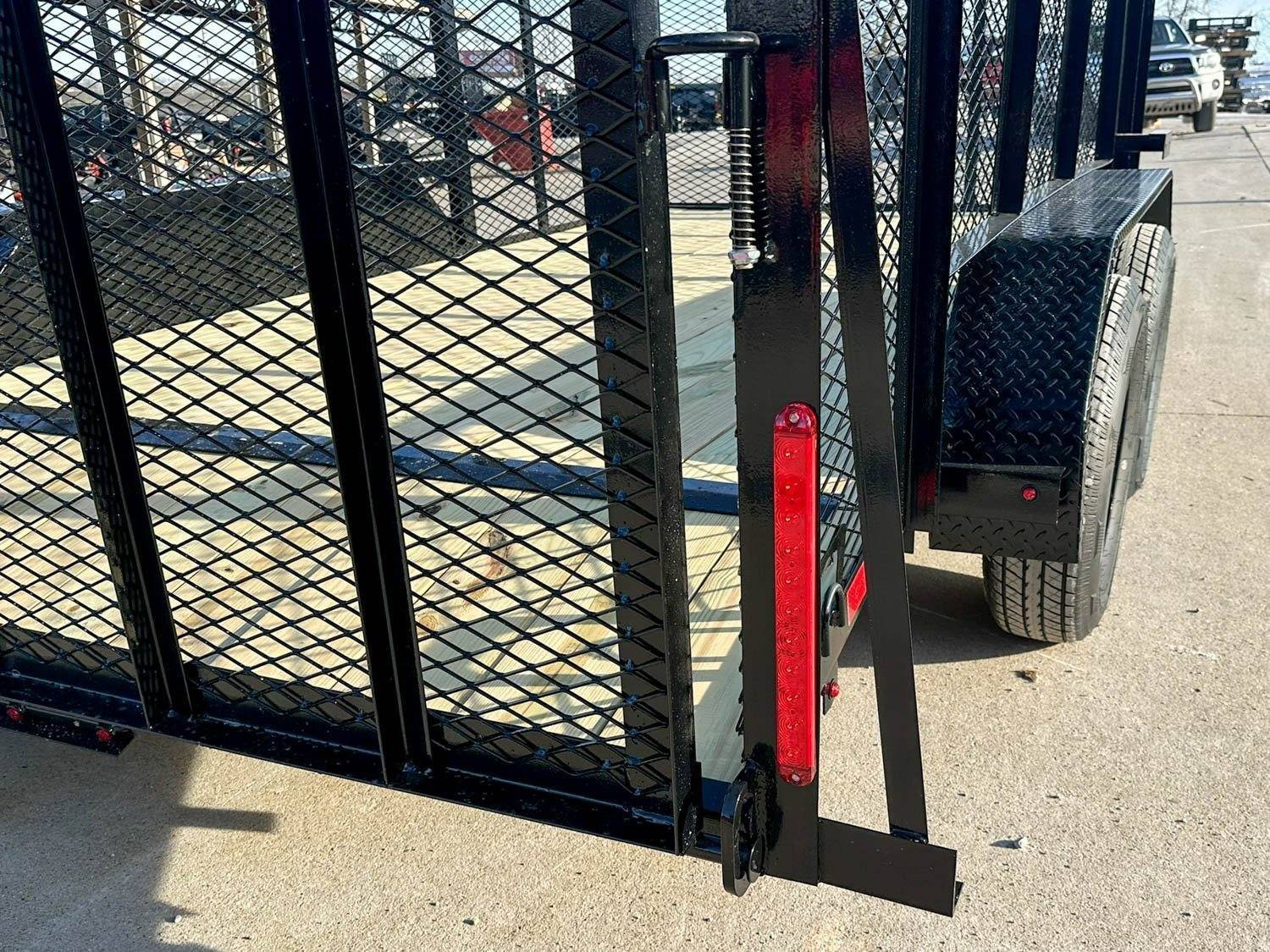 - Reinforced loading gate: The gate on the trailer is reinforced with 5 supports in addition to the outside 2 supports. This is more than most trailer manufacturers will add and it ensures the gate will not bend over time from daily loading. The gate also will fold inside the trailer so that you can use the full length of the trailer or for transport purposes.