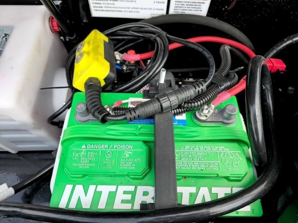 • The battery is an Interstate deep cycle marine battery, offering dependable power.