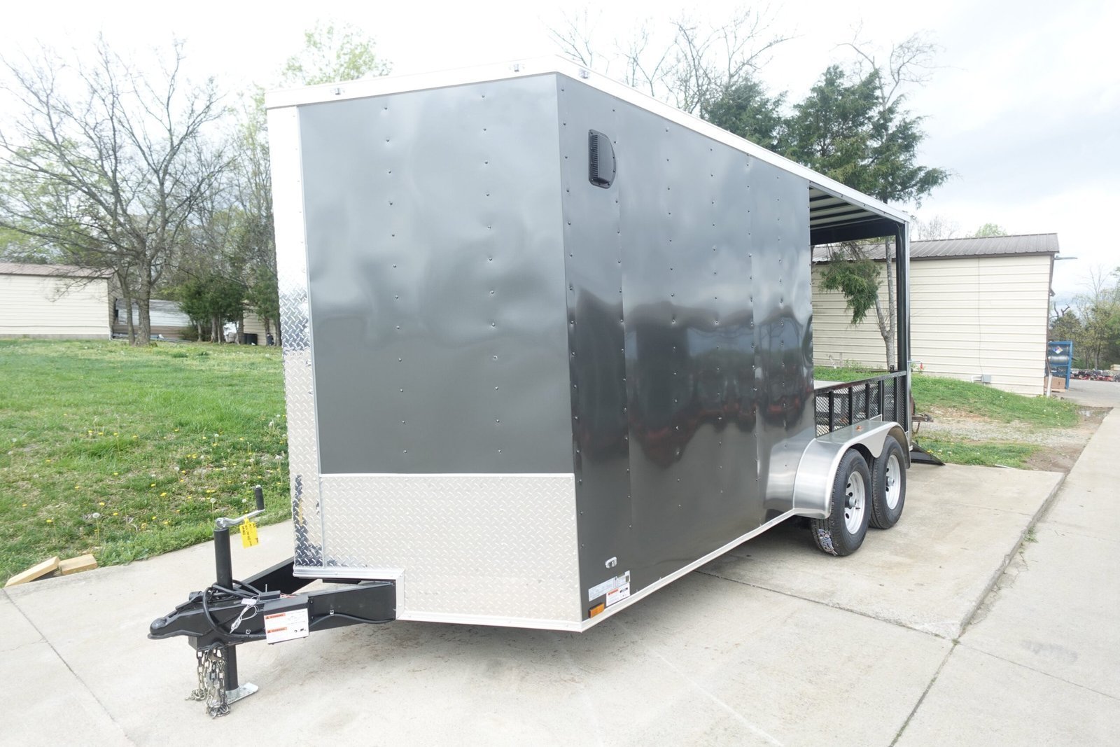 7×16 Charcoal V Nose Hybrid Enclosed Trailer (2) 5200lb Axles with Brakes