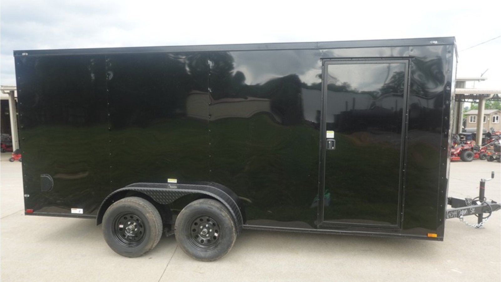 7×16 Enclosed Trailer Black V-Nose Blackout Pkg Tandem Axle Storage Original price was: $8,599.00.Current price is: $6,999.00.