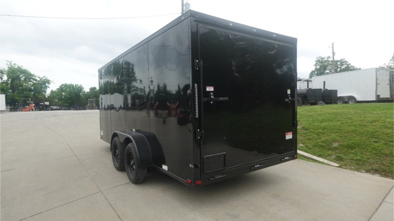 7×16 Enclosed Trailer Black V-Nose Blackout Pkg Tandem Axle Storage With  6.4 Interior Height