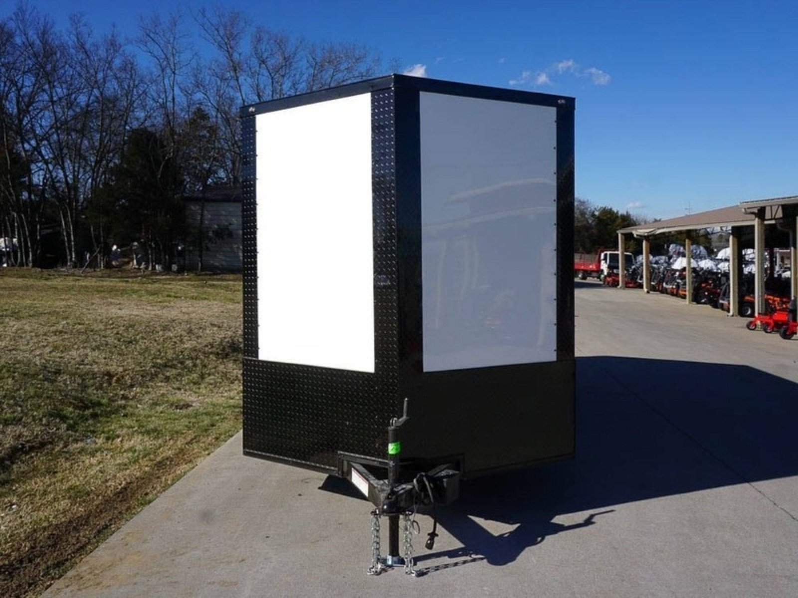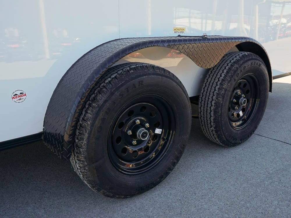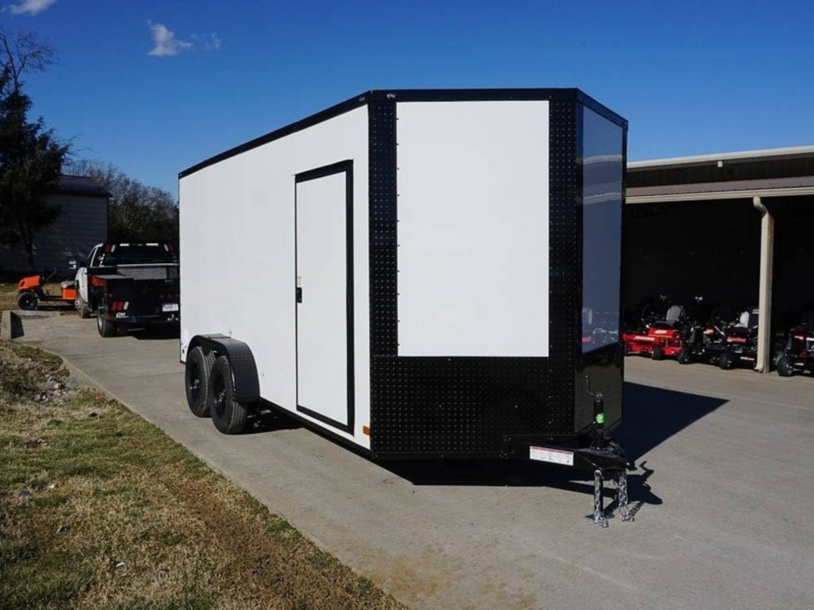 7×16 Enclosed Trailer White V-Nose Blackout Package Tandem Axle Storage