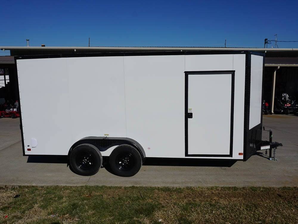 Enclosed Trailer 7×16 White V-Nose with Blackout Package