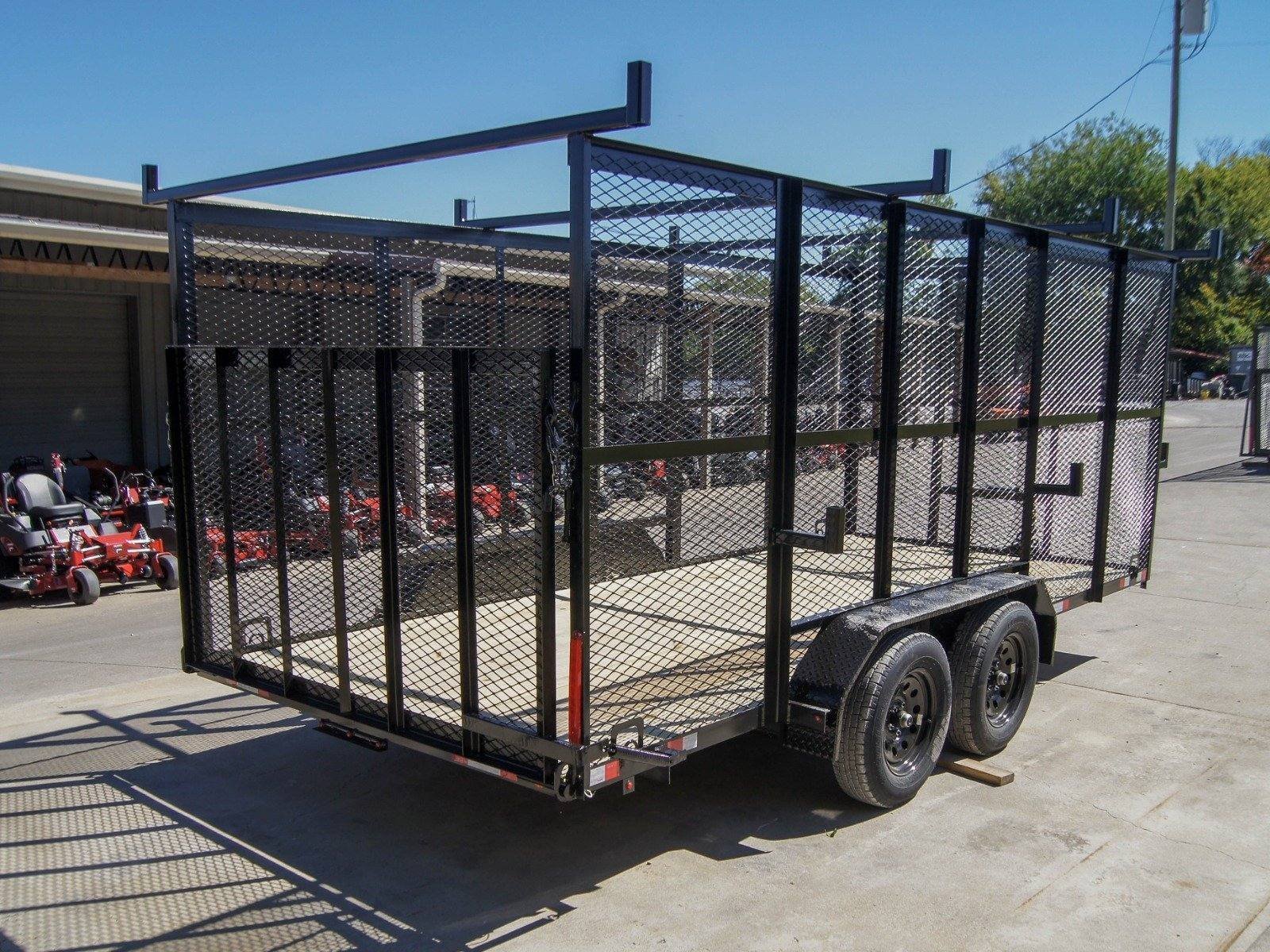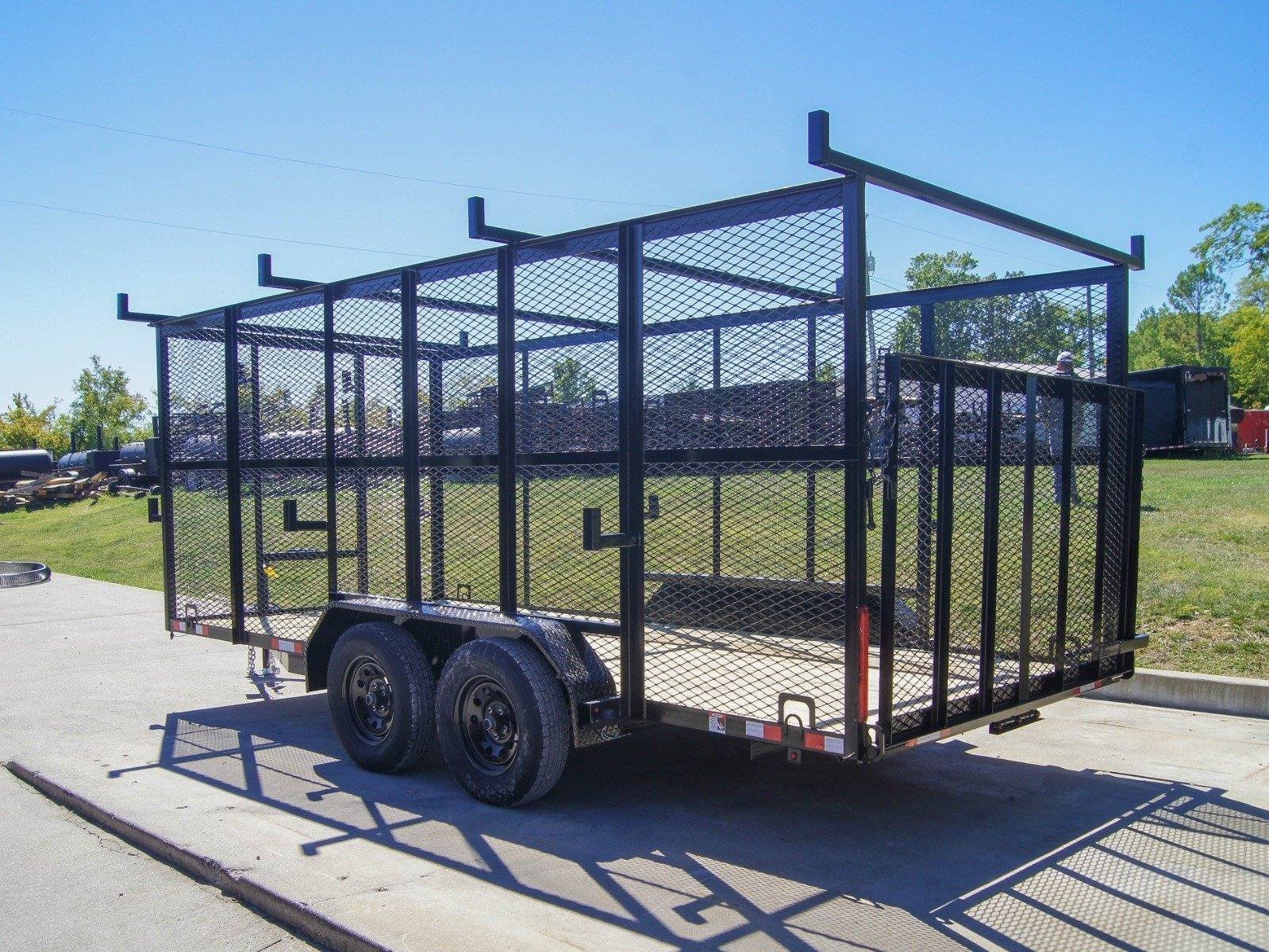 7×16 Tandem Straight Deck Utility Trailer with 6ft Mesh Sides and Ladder Racks