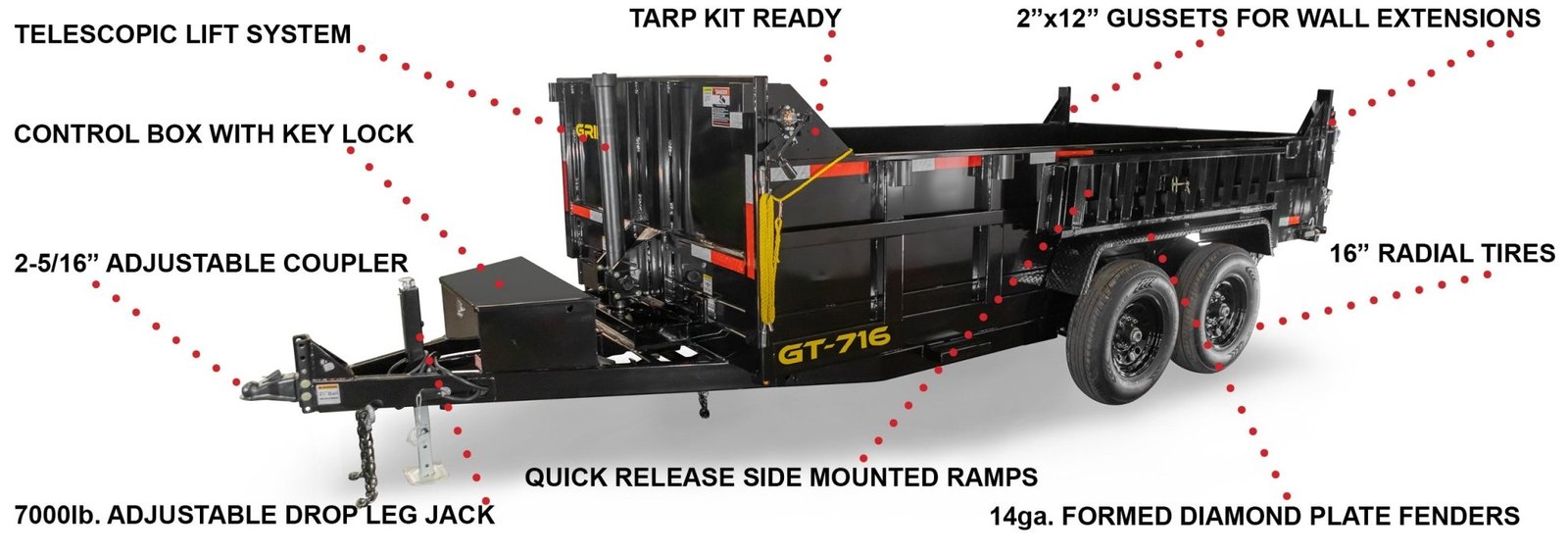 • High Payload & Versatility: 9,145 lb. payload, 10,000 lb. dump capacity, integrated tarp system ready, and rugged construction for long-term durability.