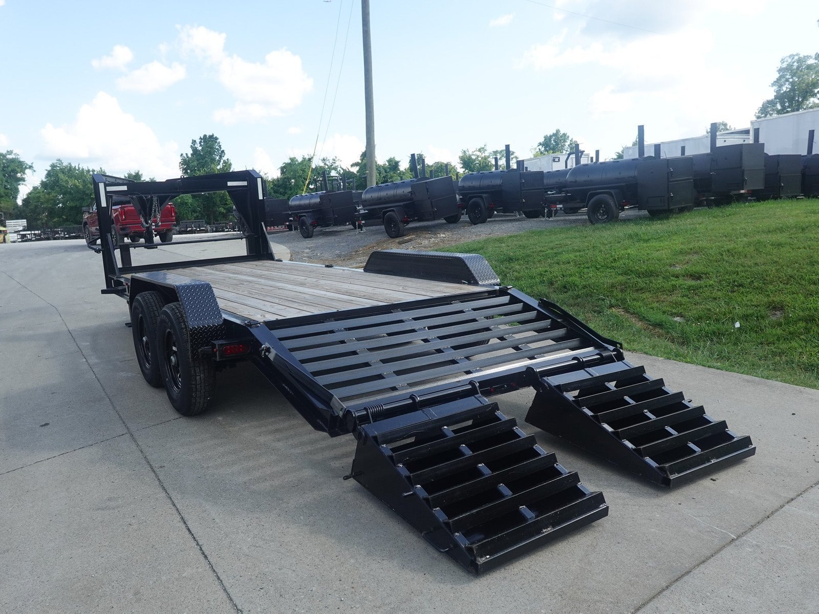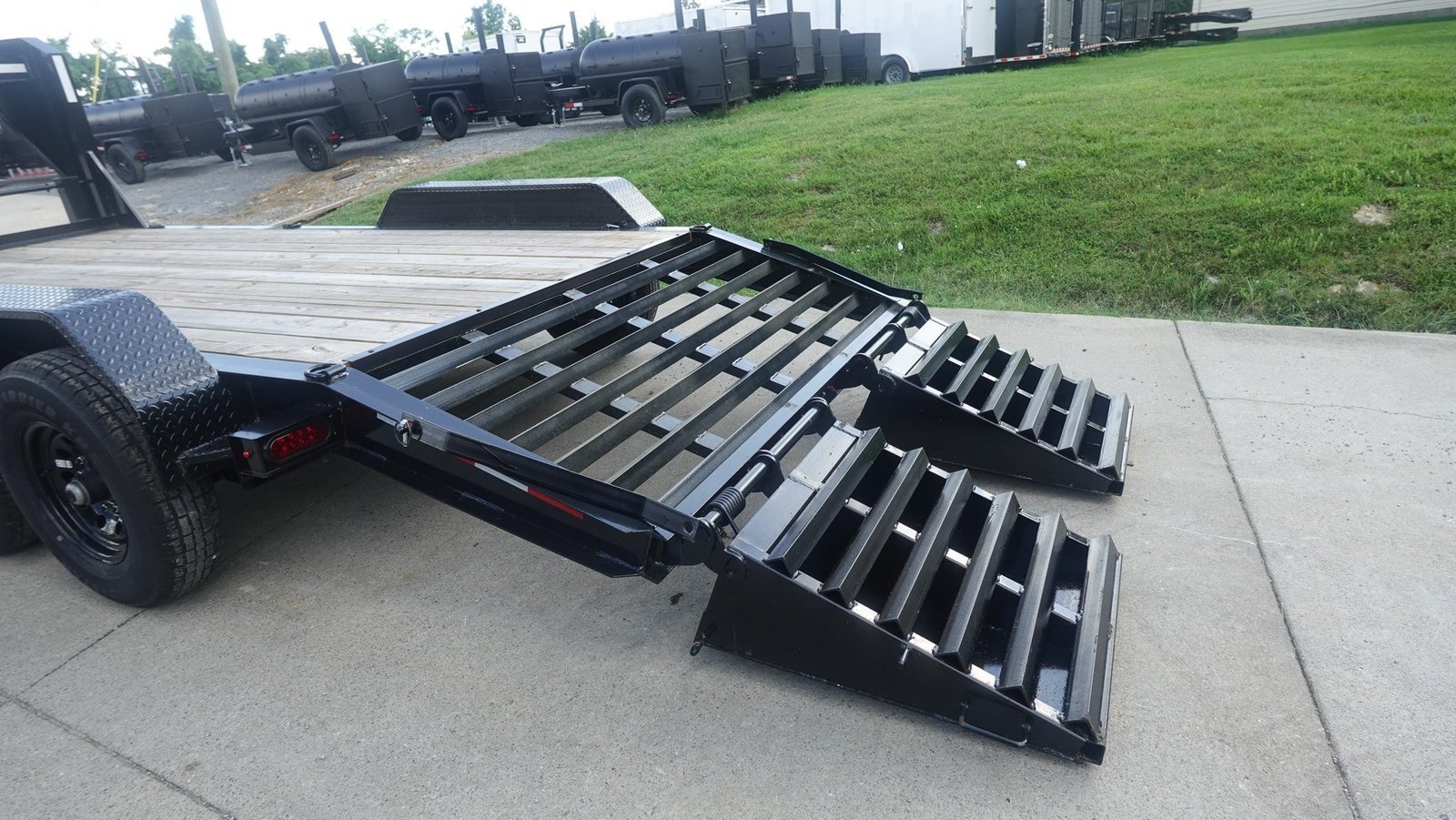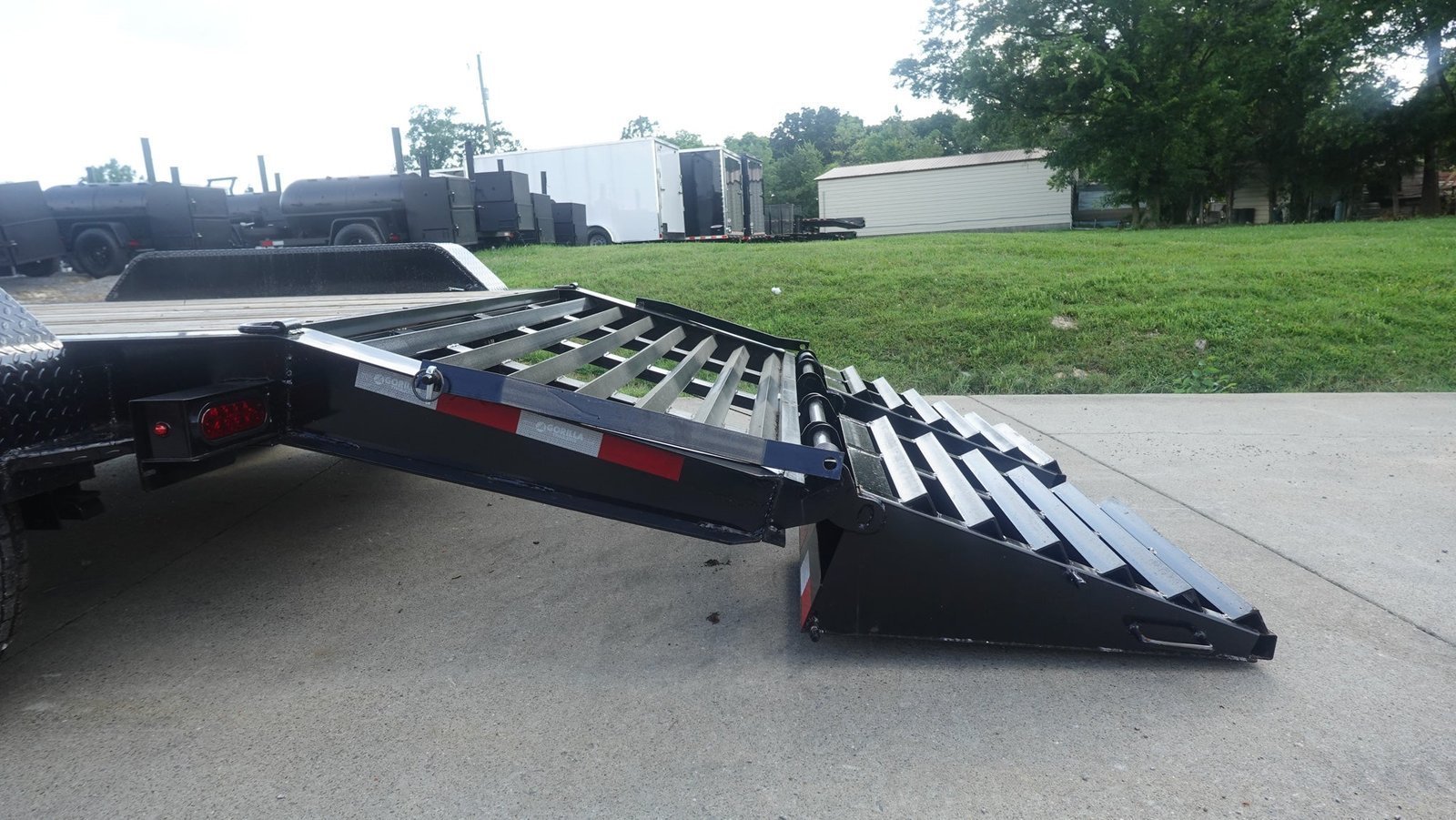- Dovetail : The trailer doves/dips down slightly in the rear. This helps when loading equipment of any type it also cuts down on the wind draw and increases the durability.