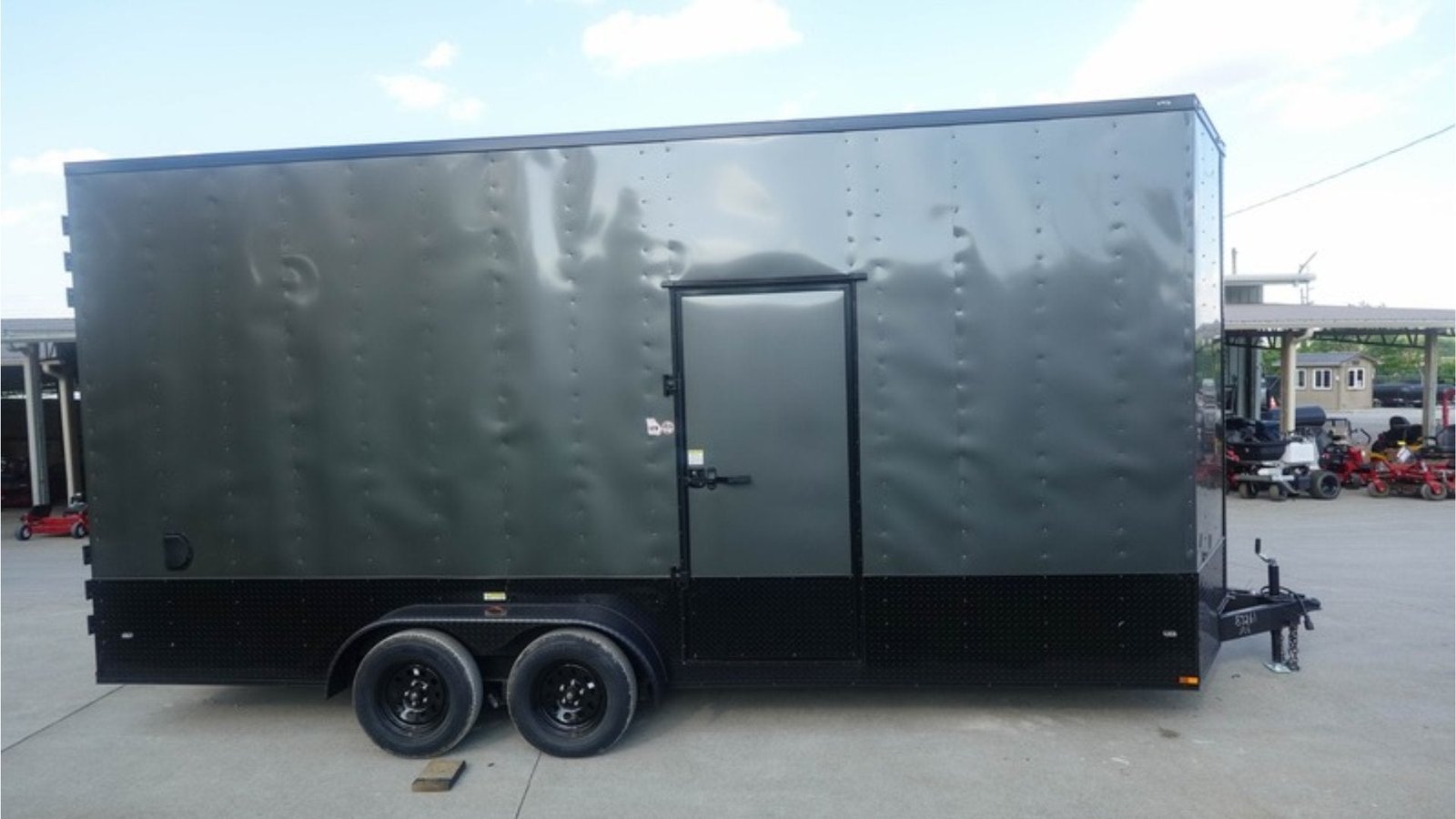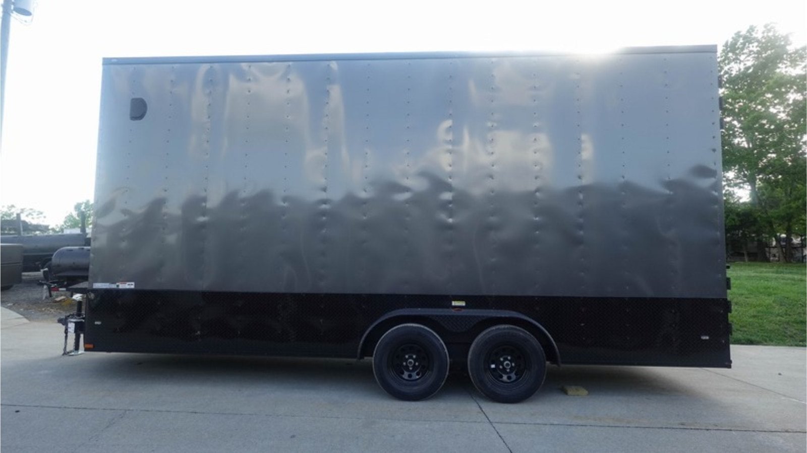 7×20 V Nose Charcoal With Black Out Trim Enclosed Trailer (2) 3500 LB Axles 9 Ft Interior height Barn Doors