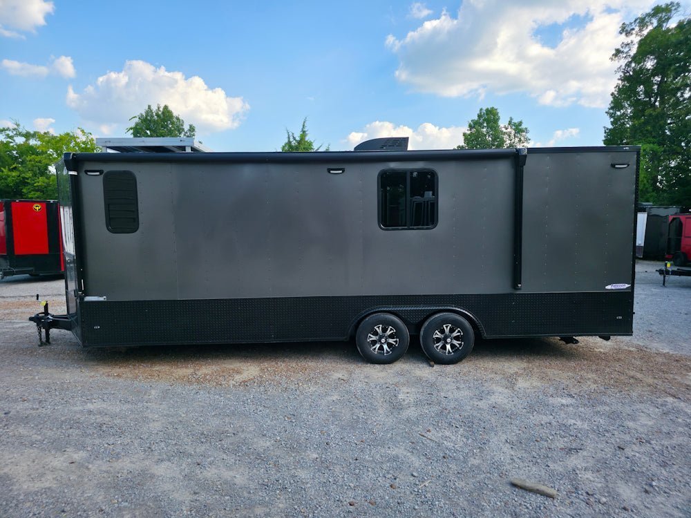 8.5′ X 24′ Charcoal Grey With Blackout Custom Mobile Command and Office Trailer