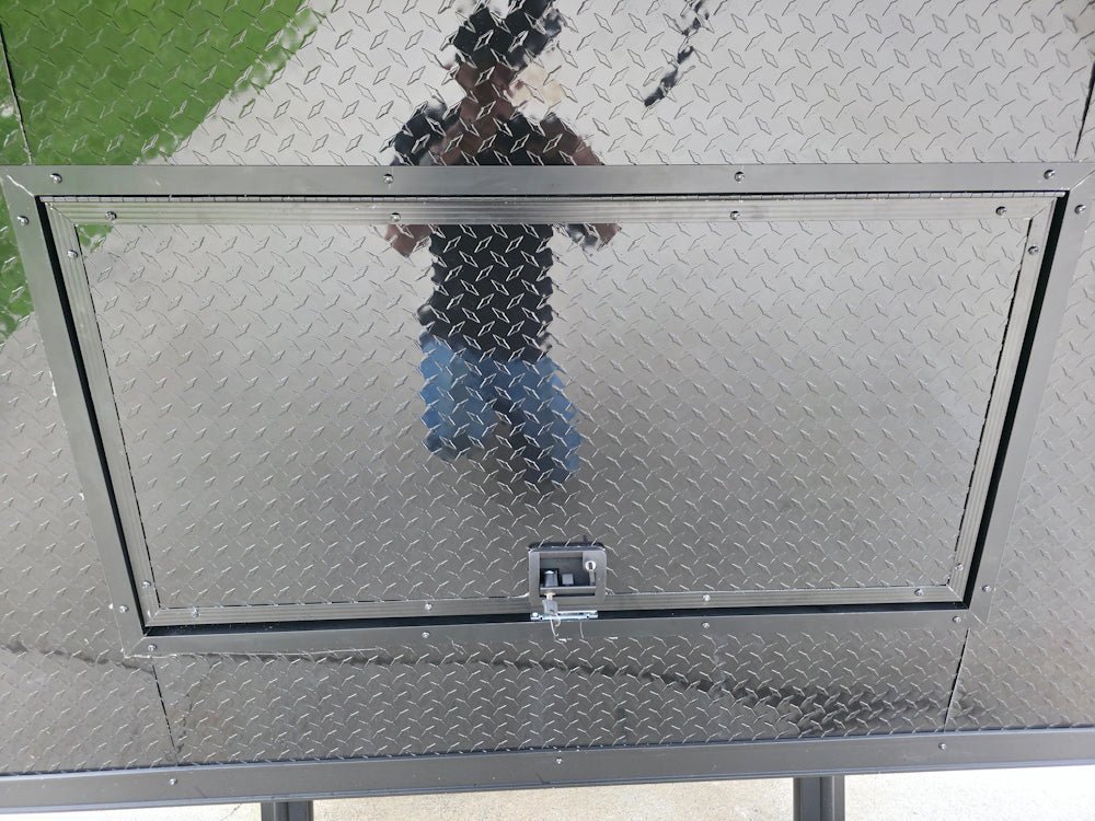 • 36″ rear entry door on the enclosed area features both a barlock and RV-style flush lock, offering strong security combined with user-friendly functionality.