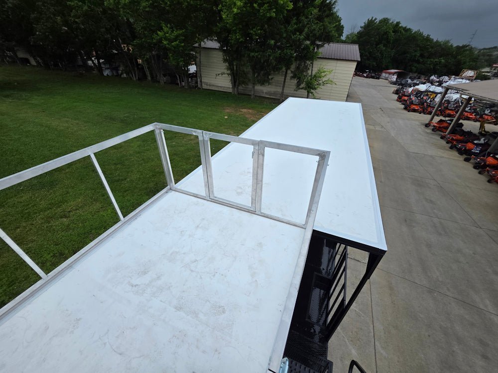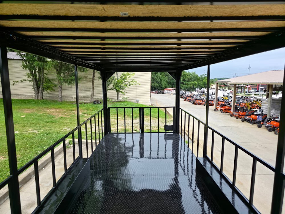 • Rear deck includes 36″ side rails, a 36″ side entry gate for quick and safe access, and barn door-style railing at the rear for secure closure and versatile access.