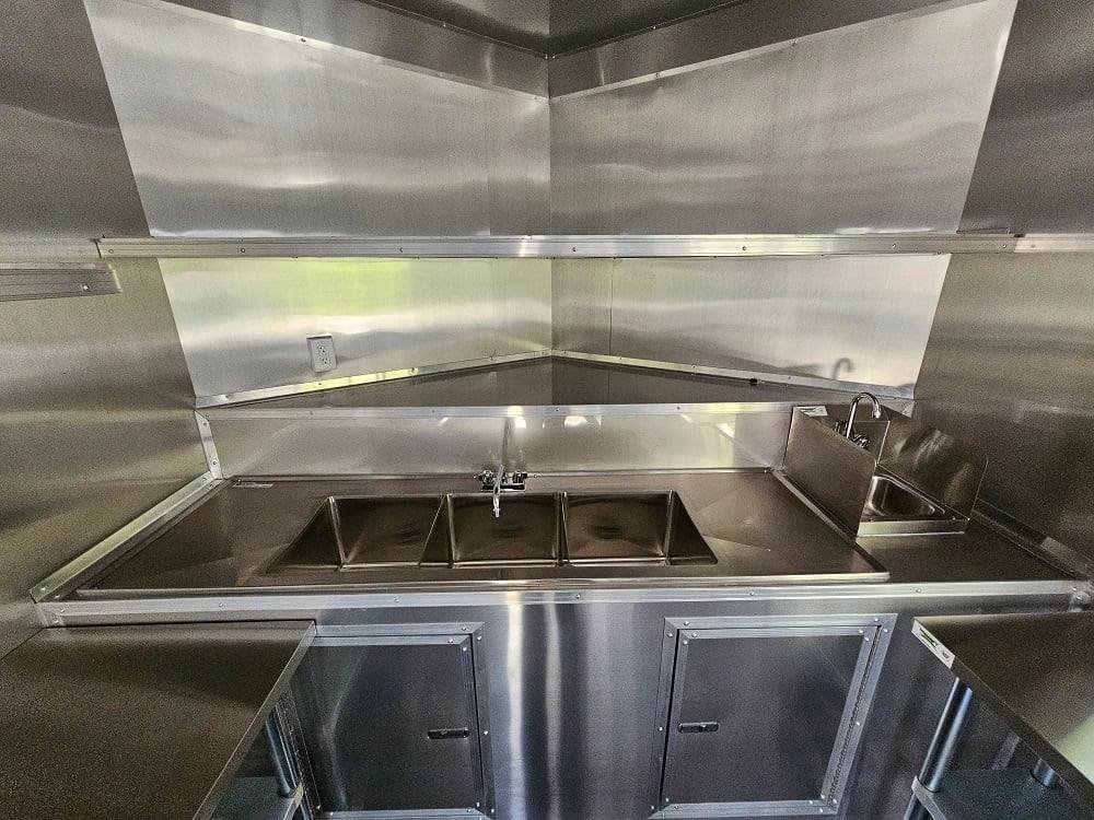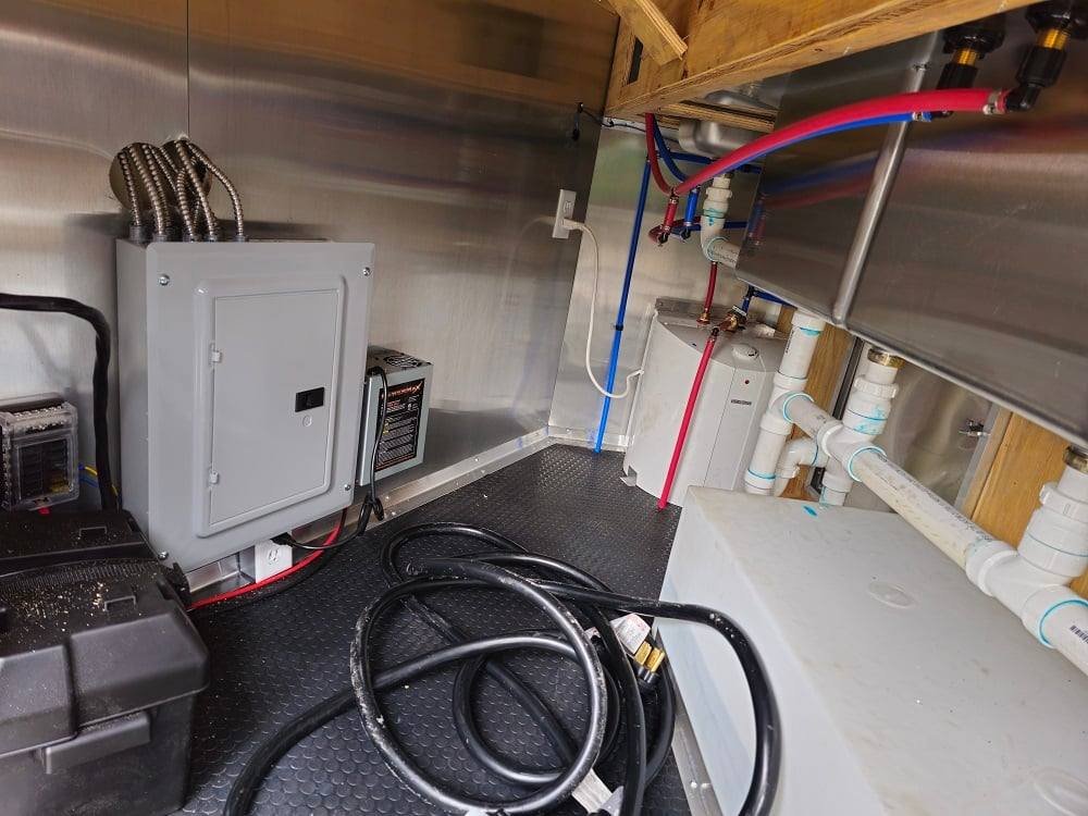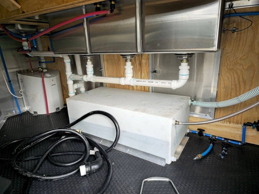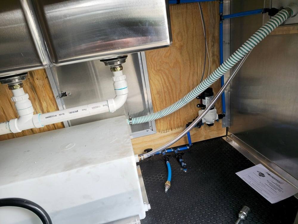 • Complete Plumbing & Ice-Ready Setup – Sink package includes 30-gallon fresh and 50-gallon waste tanks, a 2.5-gallon water heater, city water fill box, and dedicated fresh and drain lines for an ice machine.