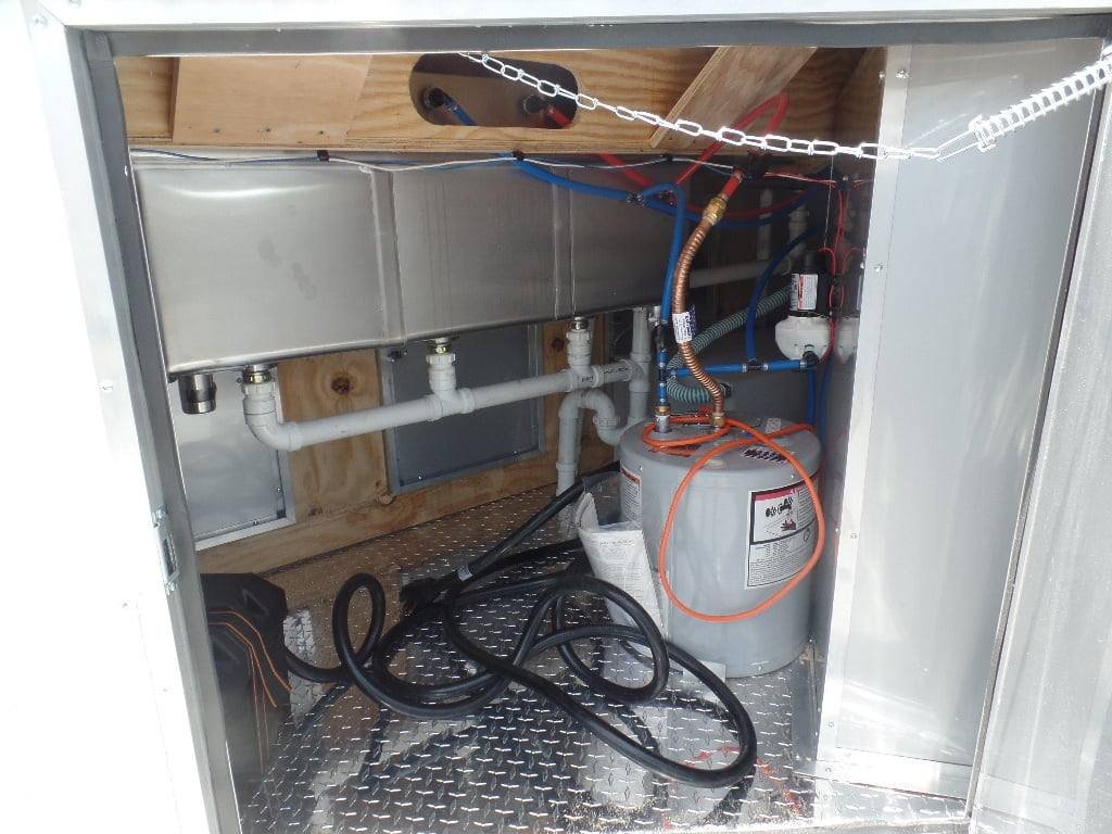 • Complete Sink & Tank Package – Includes 30-gallon fresh water tank, 50-gallon waste tank, and a 6-gallon water heater to meet health department requirements.