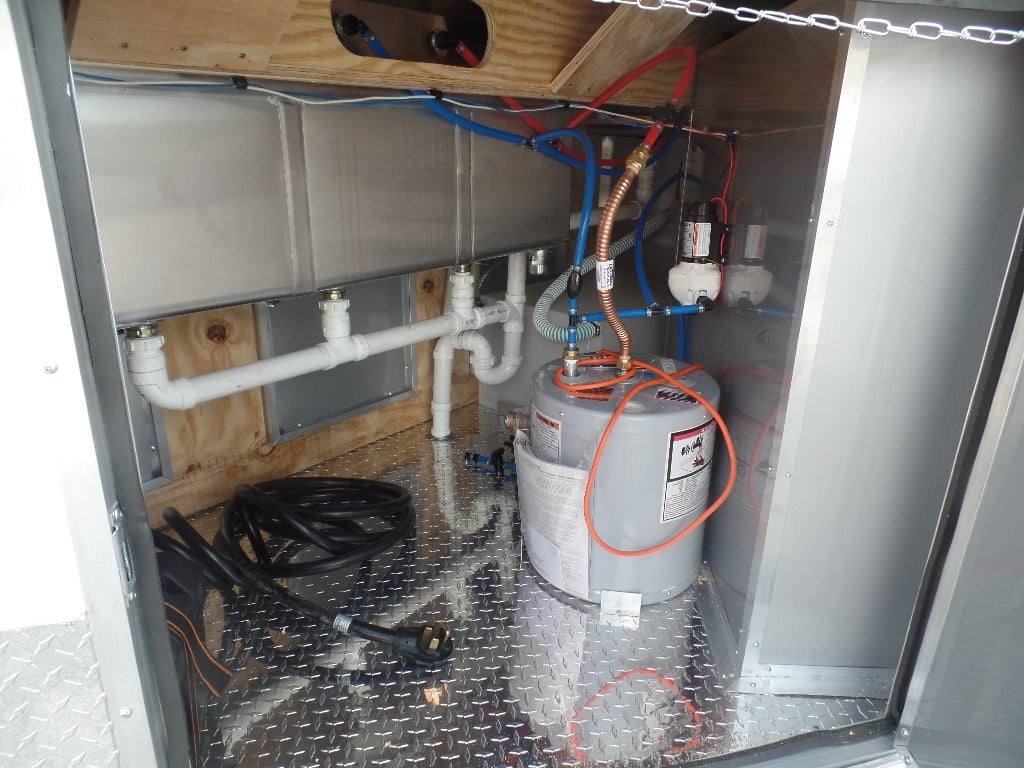 Complete Sink and Tank Package – Includes 30-gallon fresh water tank, 50-gallon waste tank, and a 6-gallon water heater to support health department compliance.