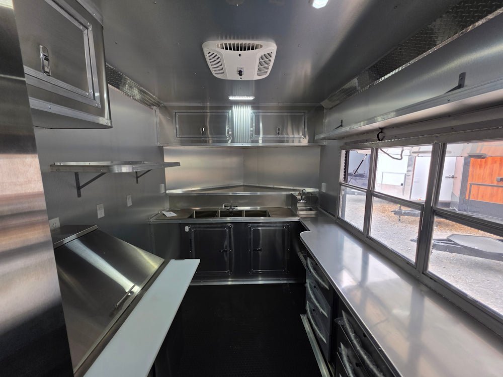Power & Climate Control: 100 Amp electrical system with 20 Amp independent circuits powers commercial appliances and lighting, while the included A/C and heat unit ensures year-round comfort.