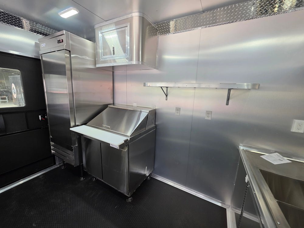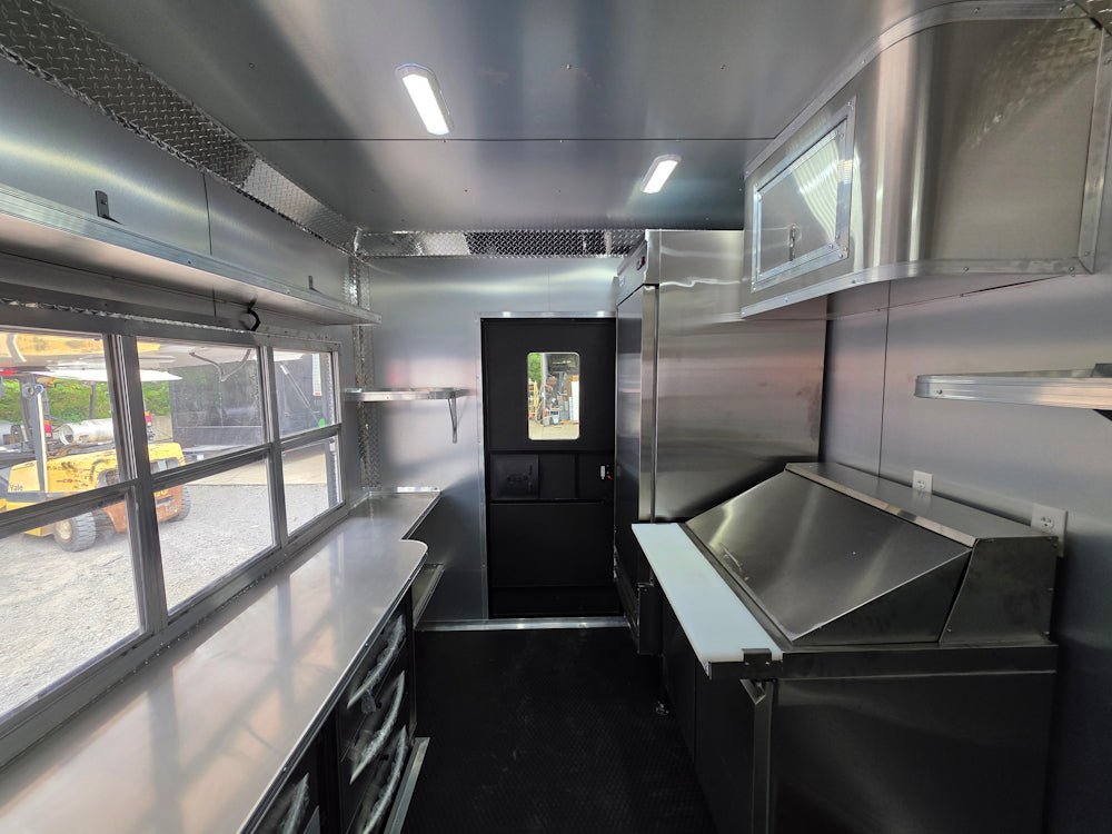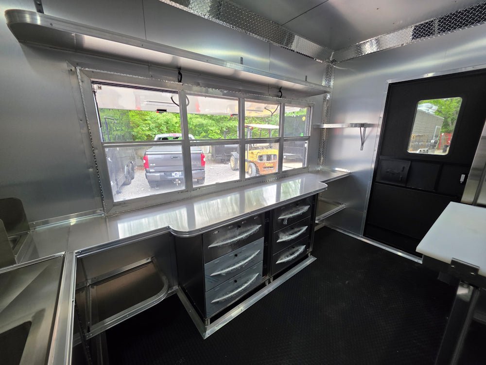 Service Window & Counter: 3′ x 8′ concession window with glass/screens and a 4′ flip-up stainless steel counter allows efficient customer service and expanded prep space.
