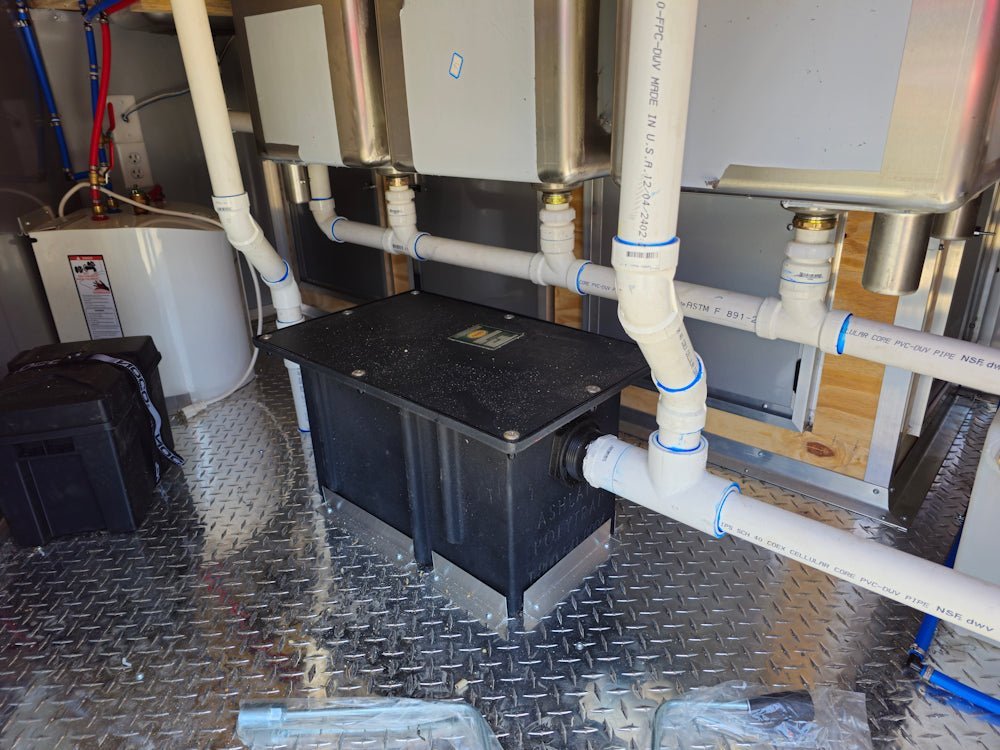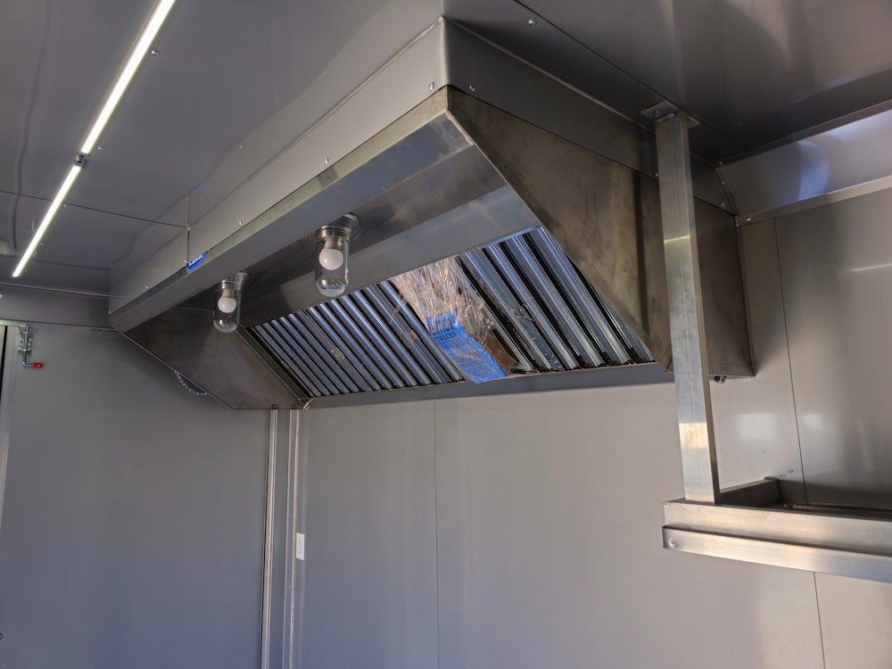 Commercial Cooking & Safety – Features a 36″ x 7′ grease hood with 300 CFM fan, dual 100 lb. propane cages, and a 20 lb. grease trap for safe, efficient operation.